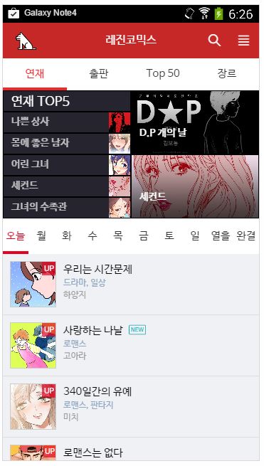 [ 레진코믹스 모바일 화면 ]