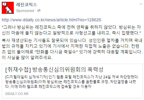레진코믹스틑 자신의 공식 페이스북을 통해 관련 내용에 이의를 제기하며, 강력 대응할 계획임을 밝혔습니다.