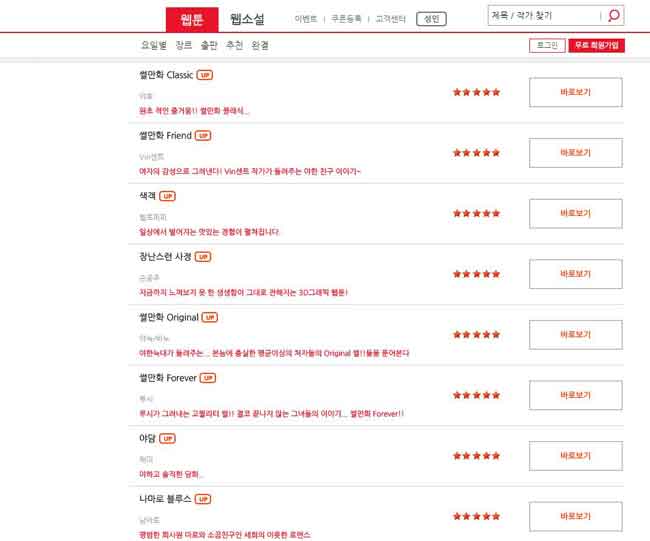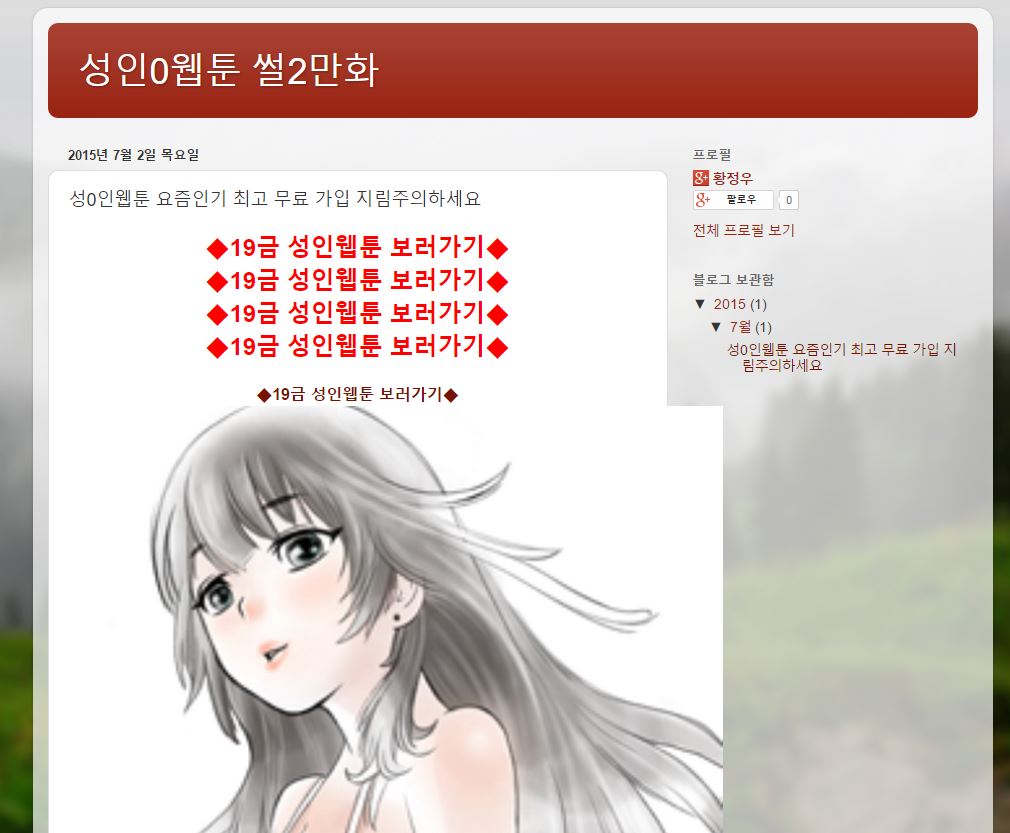 [ 블로그를 통해 확인된 성인 웹툰 플랫폼 화면 ]