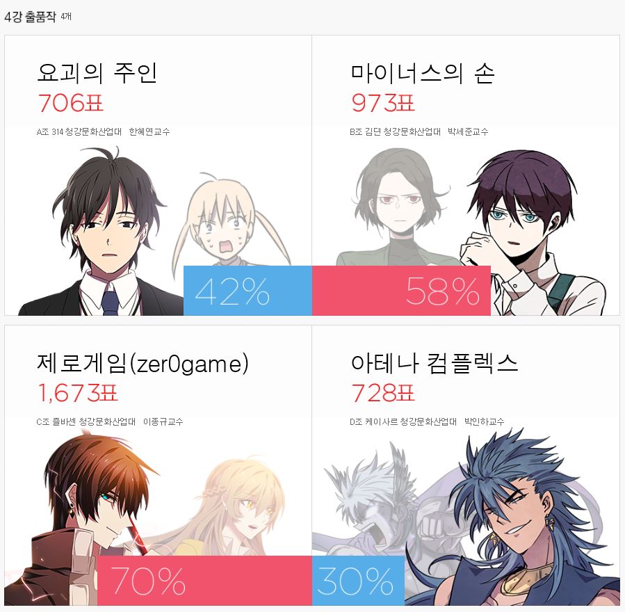 치열한 내전이 전망되는 가운데 2015년도 네이버 대학만화최강자전 준결승전, 4강 대전이 시작되었습니다.