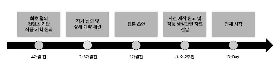 [ 트랜스 미디어 웹툰은 최소 4개월 전부터 사전 협의 후 진행됨을 확인 할 수 있습니다. ]