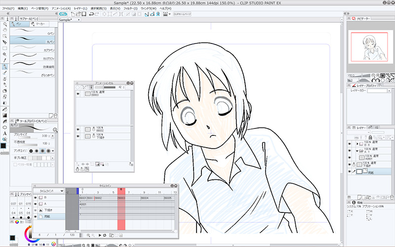 연속 된 사진 및 타임 라인을 통해 움직이는 일러스트 또는 애니메이션을 제작할 수 있는 기능이 추가됩니다. 페인트 EX 버전에서는 본격적으로 애니메이션 제작이 가능하며, PRO / DEBUT 버전에서는 제한된 움직이는 일러스트와 24프레임까지의 짧은 애니메이션 제작이 가능합니다.
