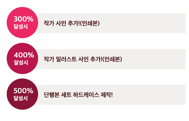 * 500% 달성시 : 단행본 세트 하드케이스 제작!