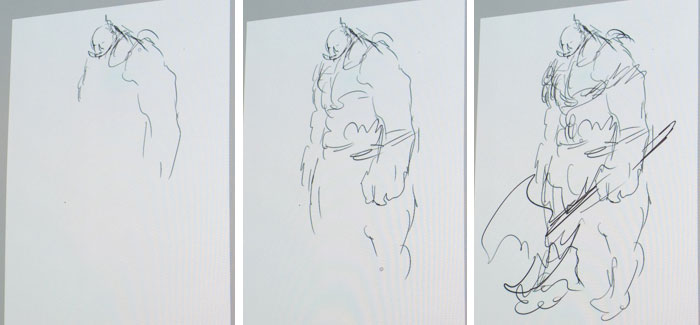 [ 강의 중간에 '내가 만약 오크 전사를 그린다면' 이라는 주제로 약 1분동안 보여준 드로잉 ]